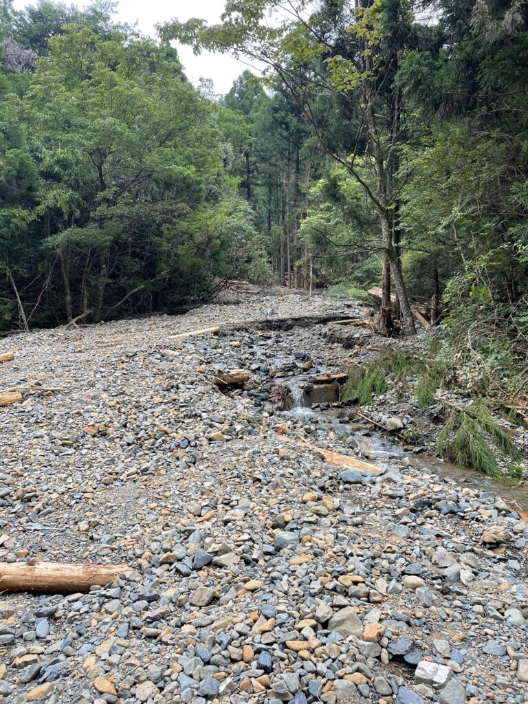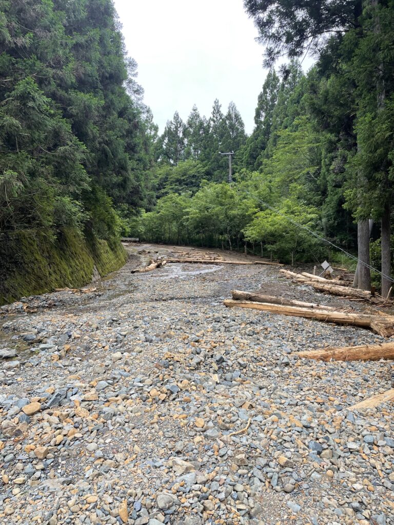 連日の雨の影響か土砂崩れで道路が2km先から通行止め!